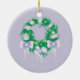 Nubian Goat- Holiday Goat Ornaments with a Tropical Flair. Lavender background with pastel gift packages and holiday branches with a pretty lavender ornament. Each design features a goat breed and on the back a tropical Holiday Wreath.