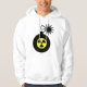 A graphic portrayal of the dangers of nuclear power. A bomb with a brightly lit fuse burning down to nuclear apocalypse.