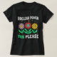 Cute smiling flowers with nuclear symbol and positive clean energy message. A cheerful retro inspired statement supporting nuclear power, sustainability and low emission electricity.