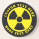 Nuclear radioactive black and yellow nuke symbol sandstone coaster. Round radiation warning sign icon design with custom text. Add your own personalised name or funny quote. Cool Holiday or Birthday gift idea for prepping friends, family, prepper, dad, husband, scientist, boss, coworker, colleague etc. Fun drink coasters for home, bar, cafe, pub, man cave etc.
