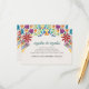 This Nuestra Boda Flowers Botanical Spanish Wedding Enclosure Card design showcases a rich and vibrant floral arrangement around the edges, with bold colors like red, orange, blue, purple, and yellow that create a festive and welcoming feel. The flowers are intricately combined with leafy patterns and small, detailed embellishments, giving the design a lively and textured look. The balance of bright, contrasting colors and the delicate, symmetrical arrangement make this an eye-catching option for a celebratory wedding stationery, especially one with a traditional or folkloric theme.