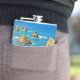 Well made flask, a little better than I had expected. Flask came in clear plastic box which gave it a nice presentation when I took it out of the zazzle packaging. Image is not printed on flask but on sticker. Don't know how this will hold up I haven't used it yet. This would make a Great gift! I plan to purchase more for friends! Cheers. I thought a little brighter than computer. Very crisp, writing wasn't