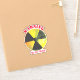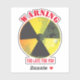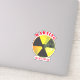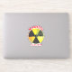Fun sticker for your luggage, electronical doohickeys, ride, bottles and work or school supplies, featuring a nuke, radiation, biohazard warning sign, but it's too late for you, you're already a goner.