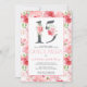Number 15 Elegant Pink Floral Modern Quinceañera Invitation