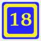 number 18, blue background, yellow frame