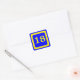 number 18, blue background, yellow frame square sticker