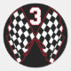 NUMBER 3 AND CHECKERED FLAGS CLASSIC ROUND STICKER