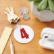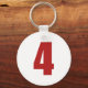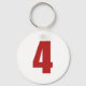 Number 4 in red on white button keychain