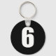 big and bold number 6 in white on the centre of black background button keychain With this numbered keychain, you can have your lucky number or your favourite number everywwhere you go. Enjoy and have fun to mix and match with the other items from our numbered series at our store GrafiGoodies. These numbered items can help you to classify your stuff easily. It is also a good choice for a small present.