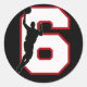 NUMBER 6 WITH BASKETBALL PLAYER CLASSIC ROUND STICKER