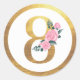 Number 8 Eight Pink Roses Floral & Elegant Gold Classic Round Sticker
