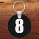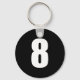 big and bold number 8 in white on the centre of black background button keychain With this numbered keychain, you can have your lucky number or your favourite number everywwhere you go. Enjoy and have fun to mix and match with the other items from our numbered series at our store GrafiGoodies. These numbered items can help you to classify your stuff easily. It is also a good choice for a small present.