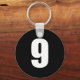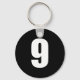 number 9 in white on black button keychain