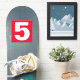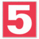 Number Five. Number 5 Individual number as a sticker. Red and white. 8x8 inches