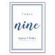 Number Nine Simple Classic Blue White Wedding Table Number
