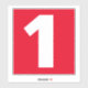 Number One. Number 1 Individual number as a sticker. Red and white. 8x8 inches