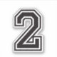 Number two sticker. Sports college font in black. The complete alphabet and numbers 0-9 are available.