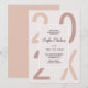 This is a simple and elegant graduation invitation featuring beige, pink, and cream number typography.