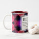 A stylish Numbers 6:24-26 THE LORD BLESS YOU Christian coffee mug with inspirational quote based on the spiritual blessing in Numbers 6:24-26, which commences with THE LORD BLESS YOU AND KEEP YOU. The design shows a burgundy/pink/purple bokeh pattern in the background. The Scripture verse is CUSTOMIZABLE so you can change the Bible translation if you prefer. You can also choose to PERSONALIZE this item by adding your name (which will appear vertically by the handle). Please see Personalise This Template options. This would make a great gift for someone to remind and encourage them of God's favour, protection and blessing on their lives.