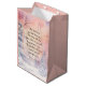 Medium gift bag with inspirational quote scripture depicts a beautiful watercolor winer scene with simple snow covered pine trees and a pink sunset sky. It features Bible Verses Numbers 6:24-26, "The LORD bless you and keep you; The LORD make his face shine on you and be gracious to you; The Lord turn his face towards you and give you peace."