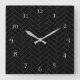 Numbers Black Grey Herringbone Pattern Square Wall Clock