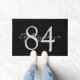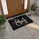 Welcome guests in style with this modern doormat, featuring a bold numerical house number alongside elegant text on a sleek black background. The large monogrammed font and minimalist colour palette in black, white, and grey create a contemporary statement for any new home or stylish entryway. Customise with your own number and message for a personalised, sophisticated touch.