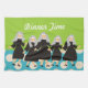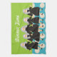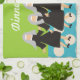 Nun Art Kitchen Towel "Dinner Time", 5 adorable nuns in traditional black habits with grey veils. Teal polka dota on a lime green background for a whimsical touch a great gift for any nun who has to cook. Perfect as a nun's birthday gift.