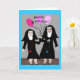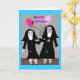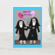 Catholic Nun Birthday card, mugs, tote bags, postacards and buttons. Two nuns, one holding pink balloons. Adorable!