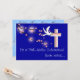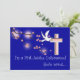 Catholic Nun 75th Jubilee invitations, daisies. "It's a 75th Jubilee Celebration, You're Invited". Dark blue background with artist drawn cherry blossom branch, white dove with olive branch and 3D style matching cross. Back of invitation is customisable and must be completed by buyer.
