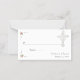Design features the soft image of a crucifix at top, right corner. The names of Bride and Groom, along with date of wedding, are displayed in an elegant, silver-coloured Nuptial font just below. The small image of a pink rose graces the left corners.