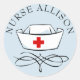 These stickers feature a nurse's cap with a cross on it along with a decorative flourish below. Above is a nurse's name for you to personalise. Background is pale blue but may be customised. Perfect for a nurse or nursing school graduate.