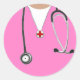 Creative nurse graduation gift stickers, envelope seals and party favour labels featuring pink hospital scrubs.