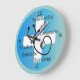 Nurse Clock, white 3D style cross, black stethoscope and syringe on background in shades of blue. Perfect for home or office, makes a great graduation gift.