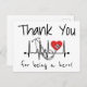 This thank you card features black text along with a heart beat line, red heart, and stethoscope. It is perfect for thanking a health care professional in your life for being a hero, whether a doctor, nurse, or anyone else who helps keep your hospital or doctor's office running!