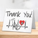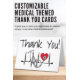 This thank you card features black text along with a heart beat line, red heart, and stethoscope. It is perfect for thanking a health care professional in your life whether a doctor, nurse, or anyone else who helps keep your hospital or doctor's office running!