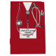 Creative nurse gift bag featuring hospital scrubs, stethoscope, and Swiss Army knife. Edit text to add nurse's name.