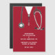 Creative nurse grad announcement for nursing school graduation featuring red scrubs.