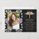 Add your photo or favourite picture to these beautiful black and white floral damask nursing school graduation announcements and invitations with a gold caduceus and printed purple stitched ribbon look design. Customise it to say whatever you want on the back and front of the nurse graduation announcement and invitation. Artwork © Chrissy H. Studios, LLC. All rights Reserved.