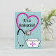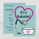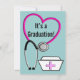 Nurse Graduation Party Invitations 2013, Heart shaped pink stethoscope design and nurse cap on a blue background. Back of invitation in coordinating colours and is fully customisable.