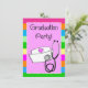 Nurse Graduation Party Invitations, bright stripes design with realistic looking black stethoscope in 3D style and nurse cap. Back of invitation in coordinating colours and is fully customisable.