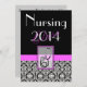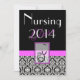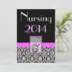 Elegant Nurse Graduation Graduation Announcement Invitations, 2014, Black and white damask with pink border and black stethoscope emblem. . Fully customisable on front and back.
