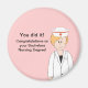 Nurse graduation magnet with image of a cute nurse and words "Congratulations on your bachelors nursing degree". Congratulate your friend or colleague on their nursing degree and celebrate with a fun refrigerator magnet for a registered nurse, licensed practical nurse, or home health aid.