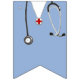 Creative nurse party decoration for nursing school grad or physician assistant celebration featuring light blue hospital scrubs and stripes.