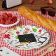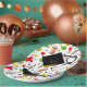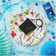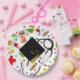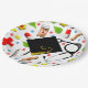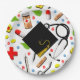 Nursing school graduation party plates featuring healthcare supplies and classic black and gold grad cap.