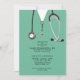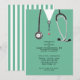 Creative nurse grad invites featuring hospital scrubs and stethoscope. Edit text to create a unique nursing school graduation party invitation or announcement.