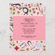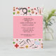 Creative nursing school graduation party invites featuring healthcare supplies and flowers on pink background. Edit text to create a unique nurse grad party invitation or announcement.