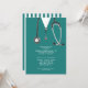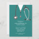 Creative nurse grad party invites featuring hospital scrubs and a stethoscope. Edit text to create a nursing school graduation party invitation or announcement.