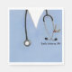 Creative nursing school graduation party napkins featuring nursing scrubs, stethoscope, and Swiss Army knife. Edit text to add name.