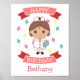 Cute birthday poster for your favourite nurse. In the centre of the design is a cute nurse wearing a white uniform and nurses hat and carrying a blue medical file. Above and below her are pink banners reading Happy Birthday in white lettering. Behind her is colourful confetti floating around. Below the design is a template to add the birthday girl's name in dark pink lettering.