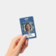 This nurse hospital photo id badge in ocean blue features a logo and provides clear staff identification for medical and healthcare settings. the vertical, professional design ensures easy verification and supports secure workplace operations.